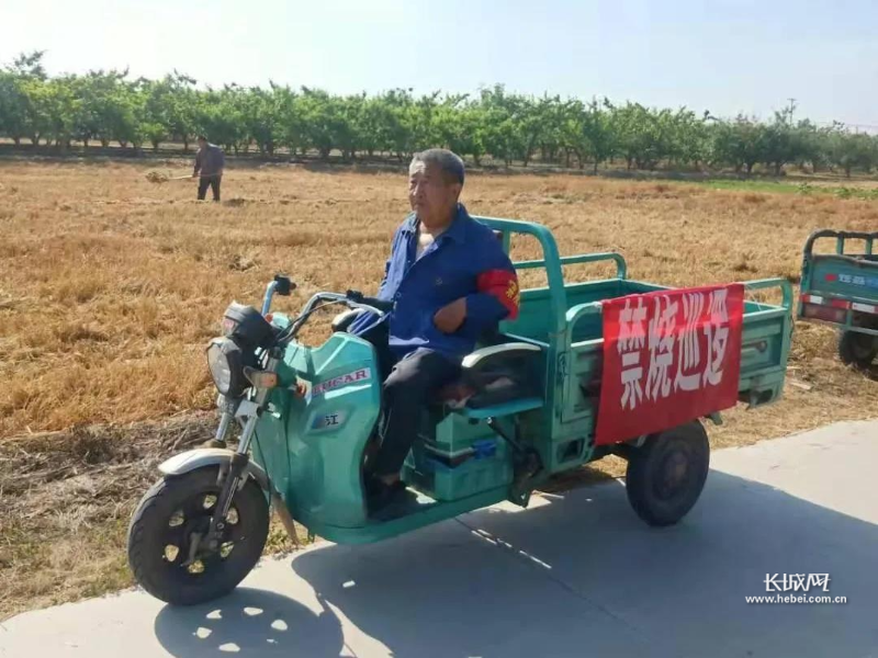 “我刚从村北回来,那边情况不错。”6月12日,在和睦井乡贾辛庄村,秸秆禁烧巡逻员们顶着闷热的天气穿梭在田间道上,并不时开个“碰头会”,互相汇报一下各自分管区域的秸秆禁烧情况。贾辛庄村党支部书记贾祥说:“我们村里对秸秆禁烧抓得很严,一方面通过大喇叭、微信群、巡逻等方式宣传,一方面配备打秆机,及时处理秸秆,确保不着一把火,为咱们辛集的蓝天白云作贡献。”