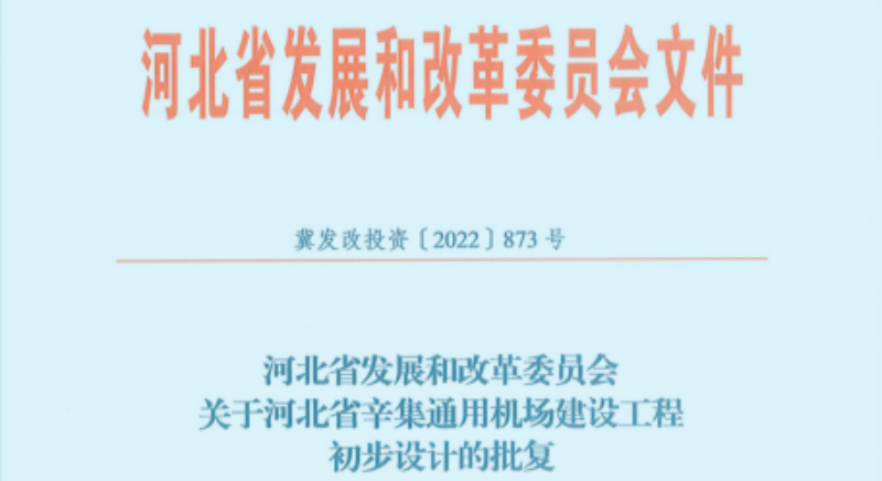 2022年7月6日,河北省发展和改革委员会批复辛集通用机场项目初步设计报告,该项目稳步推进。