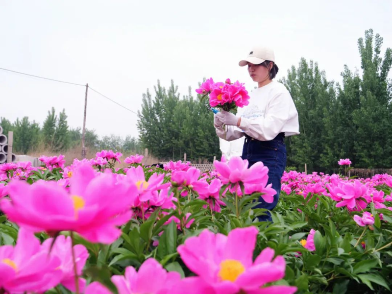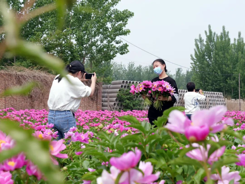 芍药花作为鲜切花新宠,逐渐走入人们的视野。近日,新垒头镇新垒头村赵保春种植的露天芍药迎来盛花期,吸引了众多游客前来观赏、采摘。