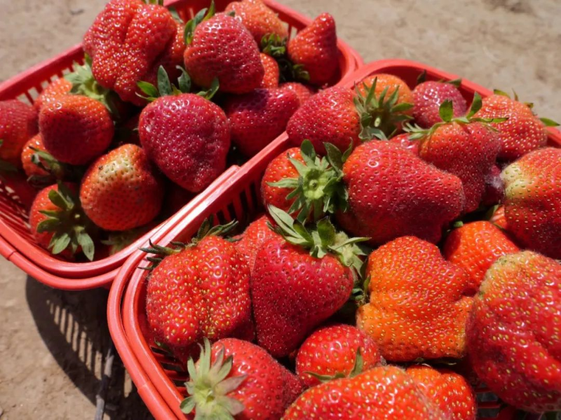 草莓基地负责人柴立飞说:“我们这儿的草莓种植面积有100亩左右,种植了大寨、蜜宝两个品种,个个品质优良,味道浓郁,今年产量比往年都好,每亩预计5000多斤。目前正大量成熟,采摘期可持续到6月份。”