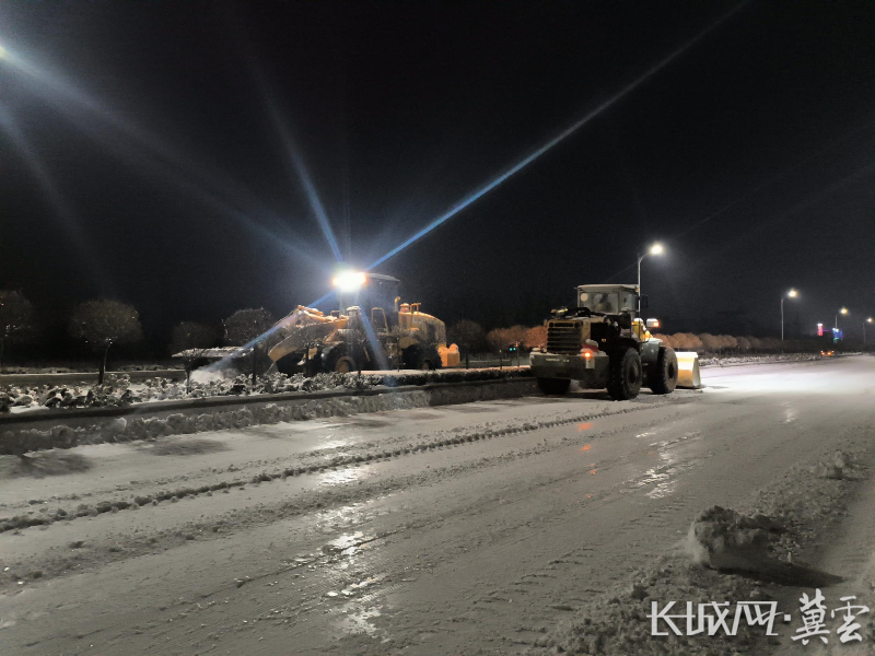 长城网·冀云客户端12月15日讯(记者 刘晓天 富心迪)12月15日凌晨,在307国道辛集路段,记者看到两台铲车和两台平地机正在有序地清理积雪路面。