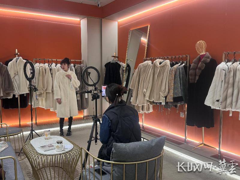 “我们是产销一体化的经营模式,现在店内有500多个款式,能供各个年龄段的消费者选购,卖得最好的是国风系列皮草,光春节这段时间就卖出了几百件。”耿喜曼说。