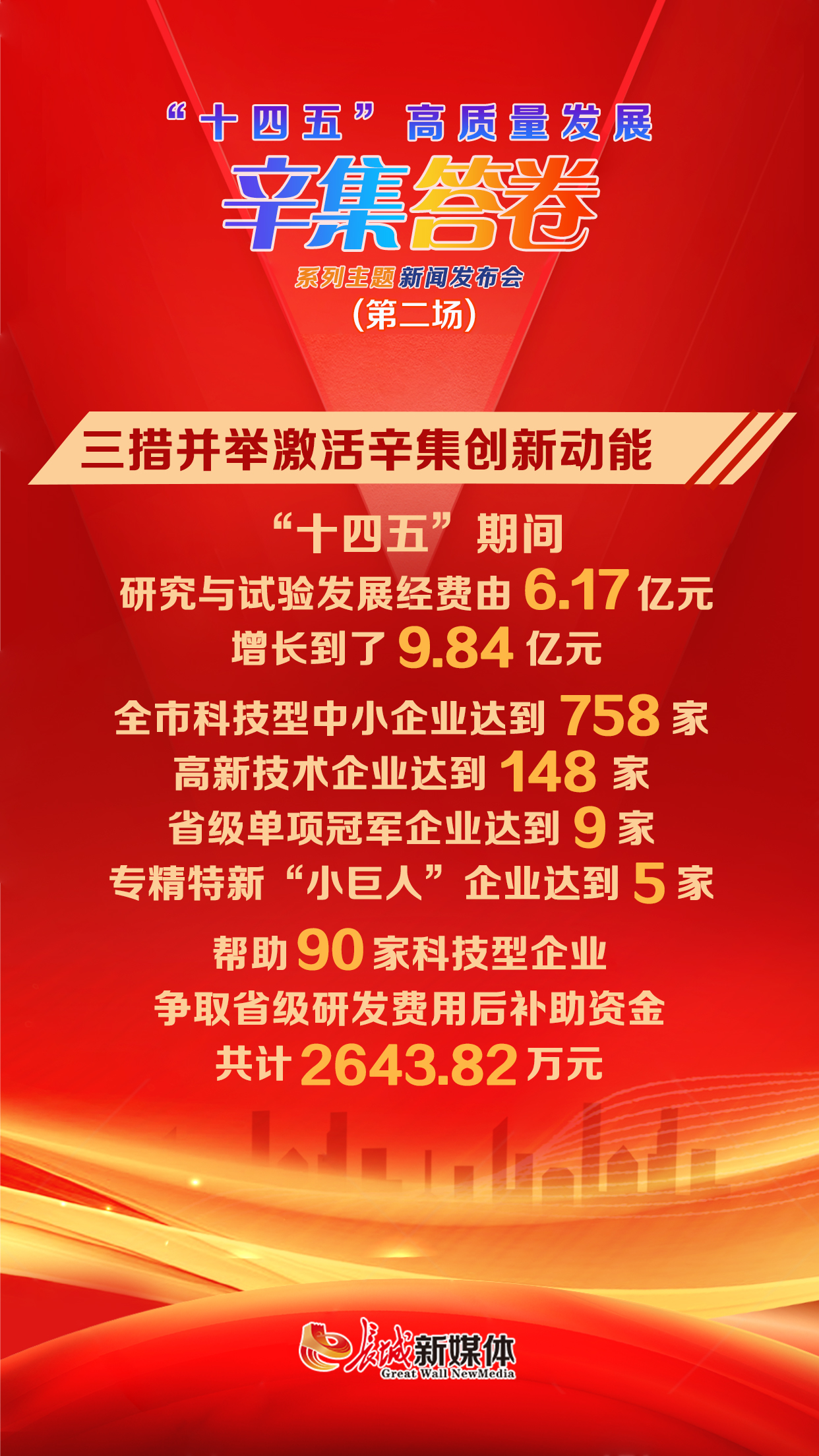 长城网·冀云客户端讯(记者 富心迪)11月12日上午,辛集市召开“十四五”高质量发展辛集答卷系列主题新闻发布会(第二场),介绍了“十四五”时期辛集市以科技创新推动高质量发展、引导企业加大研发投入、激发创新活力等方面的举措及成果。