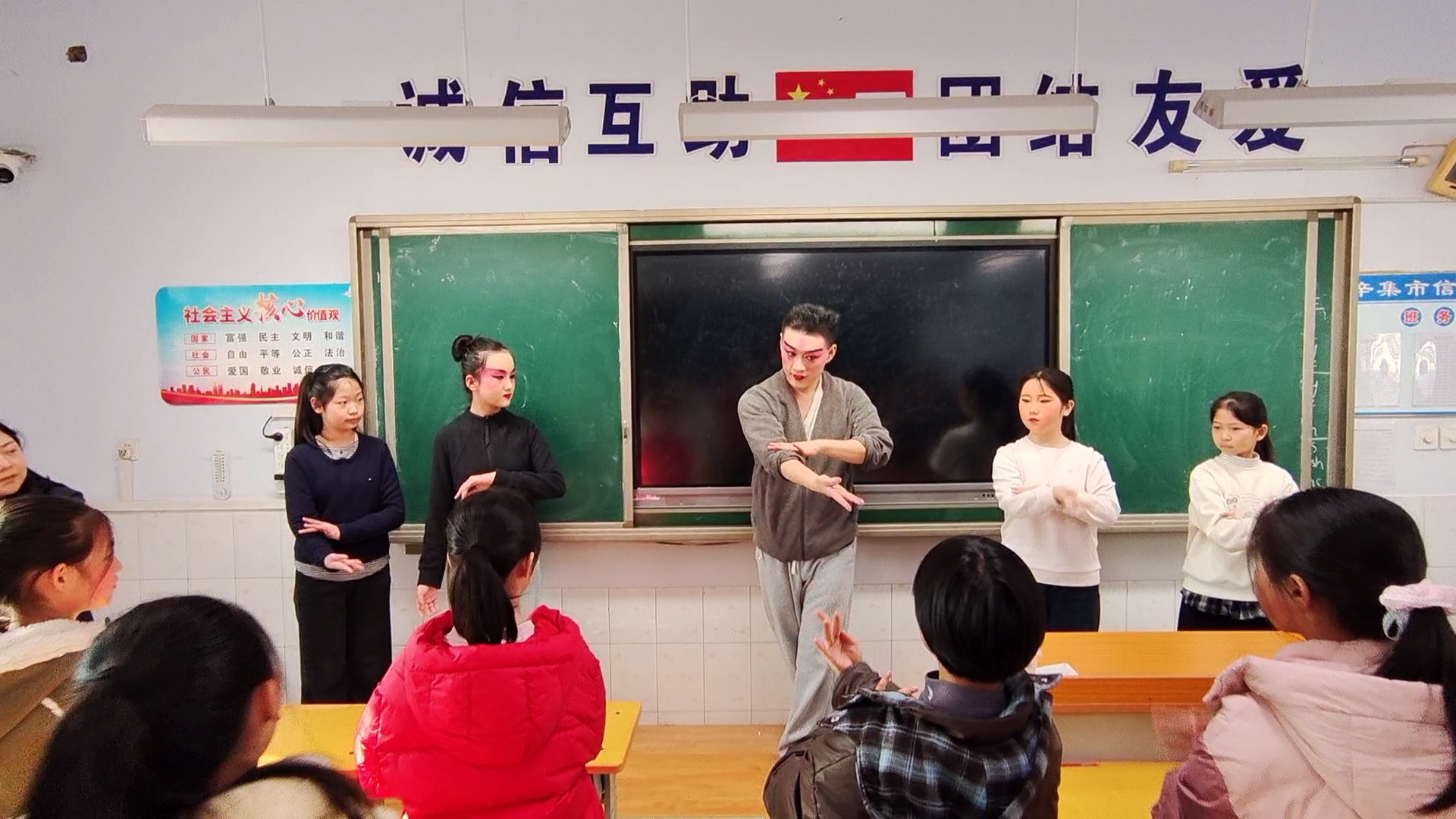 演出开始前,京剧院的老师们主动走到学生中间,手把手传授京剧唱腔的咬字、行腔技巧。这一互动让同学们从单纯“听戏”,转变为主动“学戏、知戏、爱戏”,真切领略到京剧唱腔的独特韵味与艺术魅力。