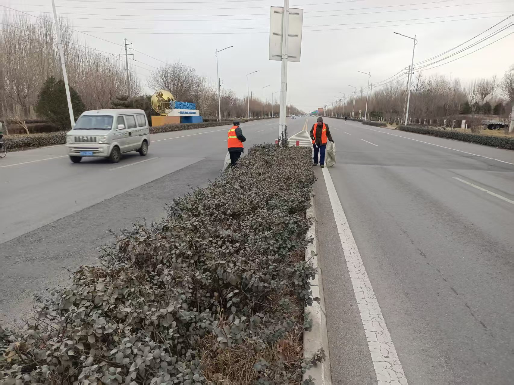 聚焦公路路域环境存在的突出问题,坚持问题导向,重点围绕路面保洁、路域秩序、桥梁安全及交安设施维护等方面开展整治。针对春运期间车流增大、路面易污染等特点,进一步加大保洁力度,采取“机械清扫+人工捡拾”协同作业模式。在国省干线等路段,每日投入清扫车3台、湿扫车3台,作业里程93.08公里,组织养护人员100余人次,全面清理路面、路肩、边坡的生活垃圾、白色污染物及堆积物等。截至目前,已清理路肩垃圾100余处、清除路面障碍物35处,路面清洁度与行车舒适度显著提升。