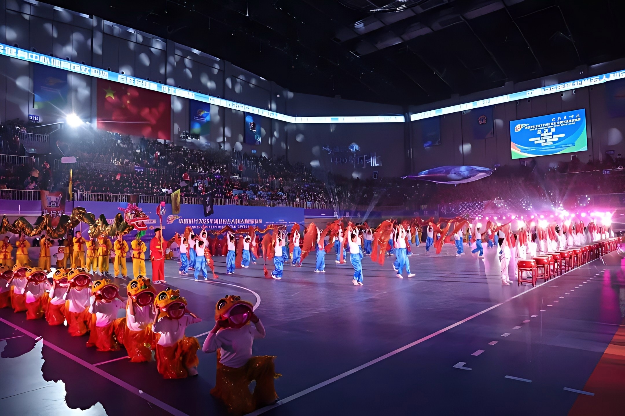 场内,超千万像素中央斗屏、环屏、端屏实现全场无死角观赛,巨型鲸鱼飞行器与文艺表演、赛场竞技交相辉映,科技感与氛围感拉满,让现场球迷大呼震撼。
